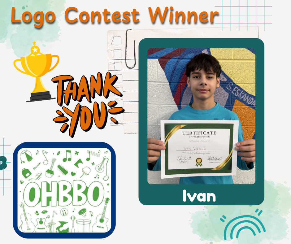 Congratulations to Ivan Vozniuk! He submitted the winning entry for the OHBBO Student Logo contest. In addition to knowing his art is representing OHBBO, he will also receive a band shirt.
